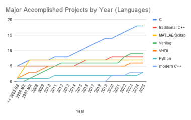 This set of charts provides a distinctive visual representation of my experience by showing how many projects of 1+ man-month of effort I have accomplished since 2005, by Language, Application and Platform. Two different chart styles for each.